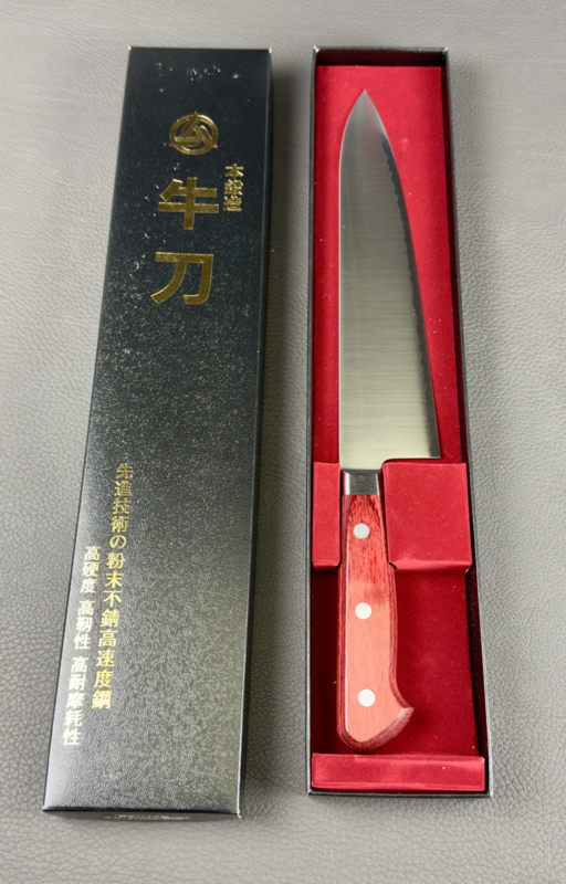 The Japanese version of a chef's knife is called the "Gyuto" and has the same cutting properties as a French-style chef's knife.