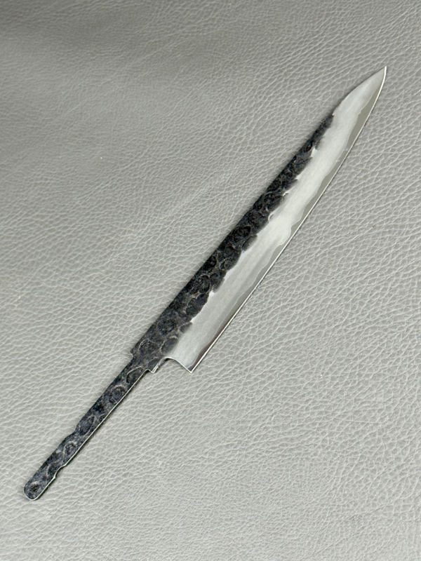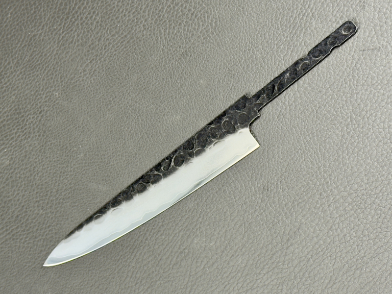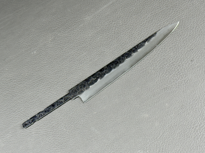 This double-edged blade is made of three-layer Sanmai forged stainless steel and an AUS8 stainless steel core.