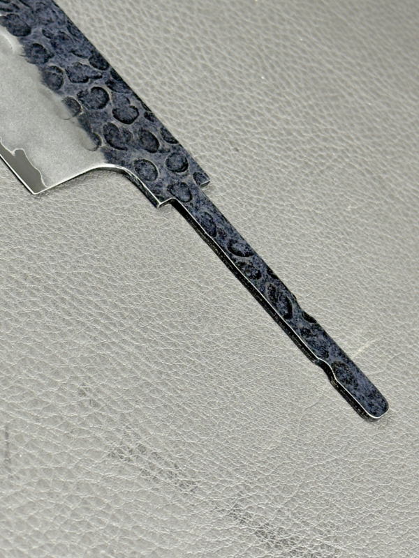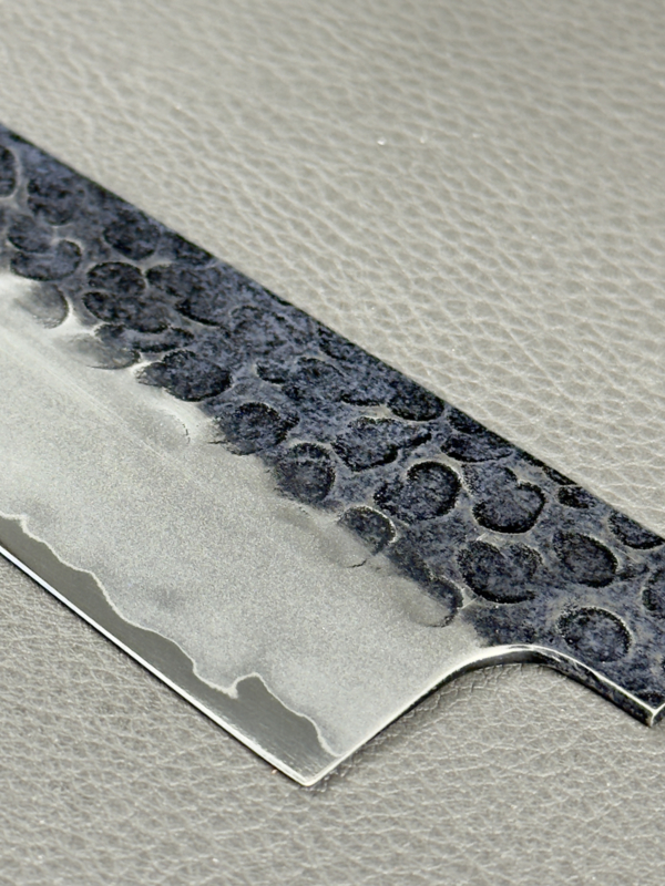 This double-edged blade is made of three-layer Sanmai forged stainless steel and an AUS8 stainless steel core.