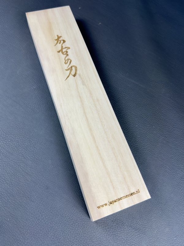 This beautiful wooden box is handmade from Paulownia wood. It makes perfect gift packaging. If you include this box with your order, we will place your knife in it unless you indicate you would like to receive it separately.