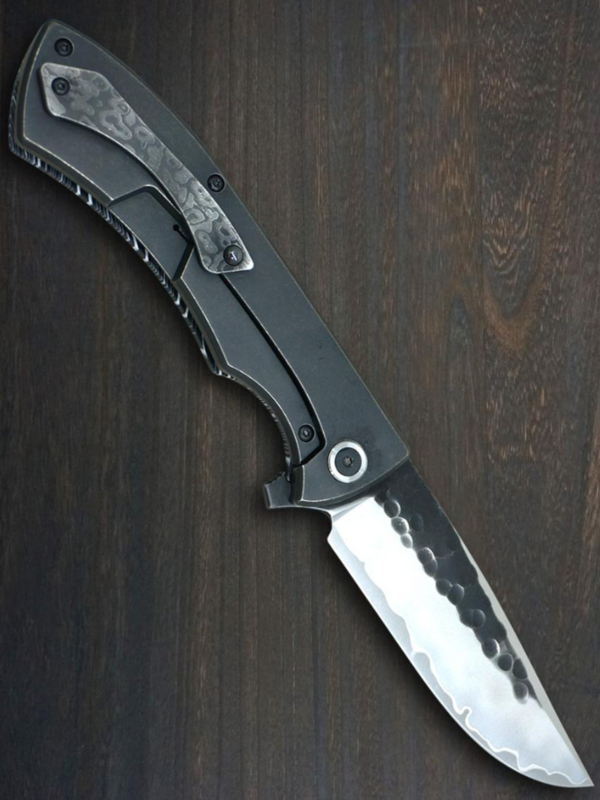 This now very scarce version of this famous Nigara pocket knife has a core of Japanese SG2 steel (stainless) with a hammered (Tsuchime) stainless steel cladding. This double-sided sharpened knife is completely hand-forged and crafted by the master blacksmith at Nigara knives. The blade is sturdy and manually sharpened and is very easy to sharpen yourself.