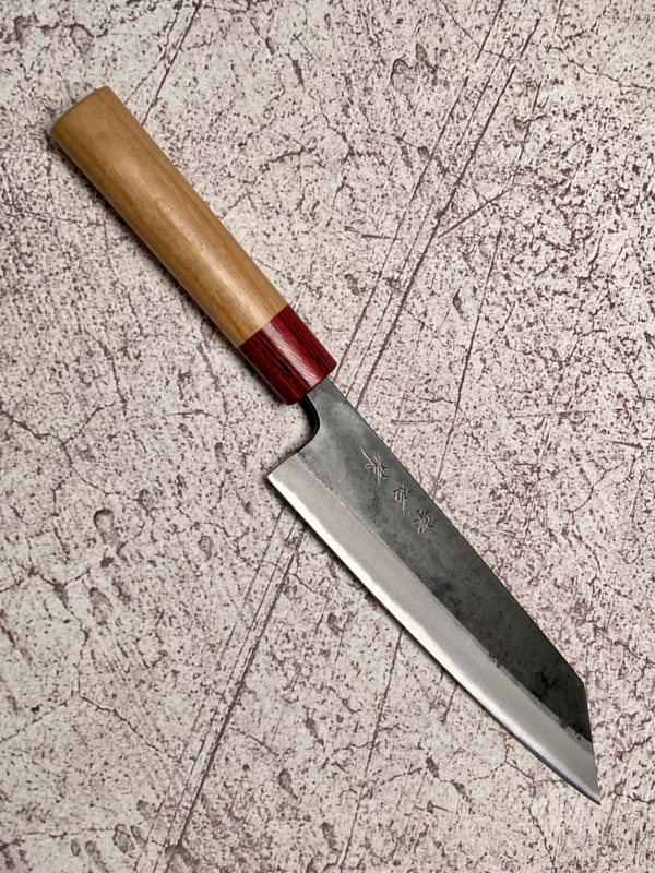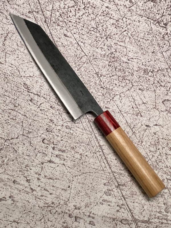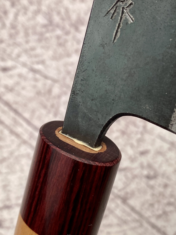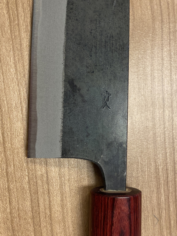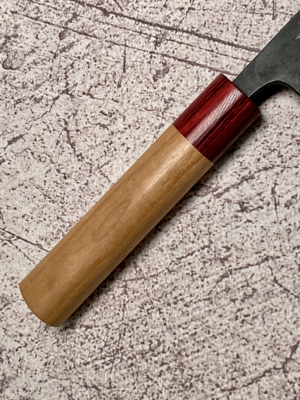 - Steel type: core steel: Japanese Aogami # 2 steel "Blue paper steel" (non-stainless) with 2 layers of carbon steel (non-stainless) with black Kurochi protective layer.